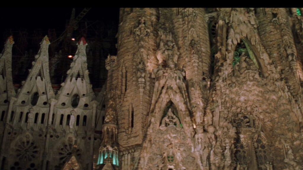 Un altre monument barceloní que captura la mirada del cineasta manxec és el Palau de la Música Catalana. L’actriu Antonia San Juan està estenent la roba amb el fons de la façana d’aquest edifici modernista de Domènech i Muntaner que el 1997 va ser declarat Patrimoni de la Humanitat per la Unesco.