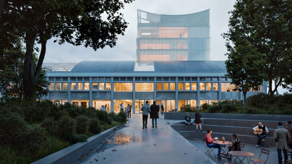 L’estructura metàl·lica original es reutilitzarà i s’hi incorporaran materials de baixa petjada de carboni, com la fusta o components reciclats. L’edifici tindrà una torre central de vuit plantes i una capacitat per a 2.500 persones.