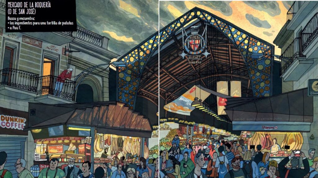 El llibre proposa jocs amagats entre les pàgines per fer participar els més petits de la gastronomia i que aprenguin els ingredients i els aliments propis de diferents regions. En el cas de la Boqueria, la proposta és buscar els ingredients per elaborar una truita de patates i trobar un personatge anomenat Pau que ens han presentat a la pàgina anterior.