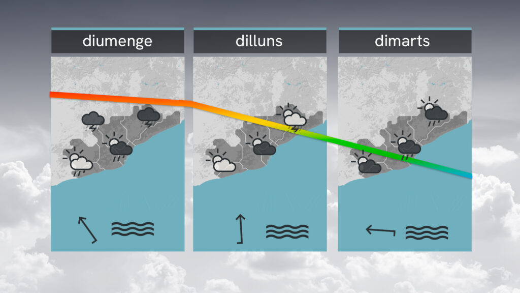 Serà precisament quan acabi l’episodi tempestuós quan s’activaran la tramuntana i el mestral als dos extrems de Catalunya que comportaran una entrada d’aire fred evident.