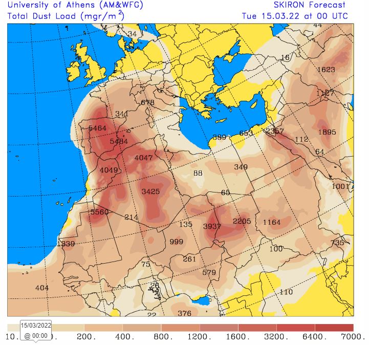 En un inici, la massa d’aire vindrà molt carregada de pols i serà seca. Dimarts i dimecres difícilment plourà a Barcelona, més enllà d’alguna gota bruta de fang. En tot cas seria entre dijous i divendres que la pluja, feble i intermitent, podria tornar a fer acte de presència. De totes maneres encara ara no tots els models pronostiquen el mateix escenari.