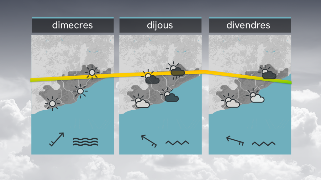 Jornada assolellada en espera que els núvols puguin augmentar entre dijous i divendres amb l’arribada d’un petit canvi de temps. No obstant això, amb els mapes a la mà, no hi ha cap episodi de pluja destacable a curt termini.