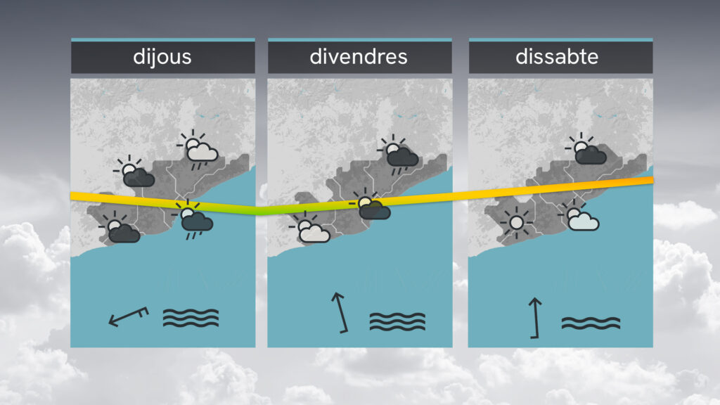 Dijous notarem un ambient clarament més fresc, sensació de finals d’estiu que s’allargarà fins a l’inici del cap de setmana. Dijous no acabarà de fer net, no es descarta encara algun ruixat a primeres hores i, de nou, a partir de la tarda. Els xàfecs aniran de baixa a partir de divendres.