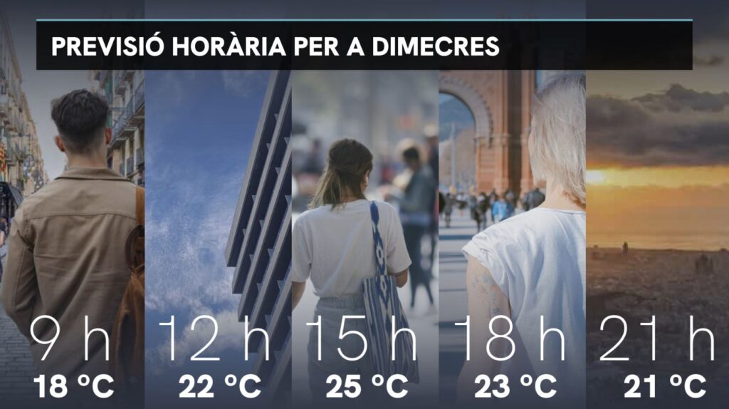 La previsió del temps per a dimecres continua anunciant ambient càlid per les dates, quasi estiuenc a les hores centrals de la jornada. Els núvols aniran a més a la tarda, símptoma de l’aproximació d’un canvi de temps.