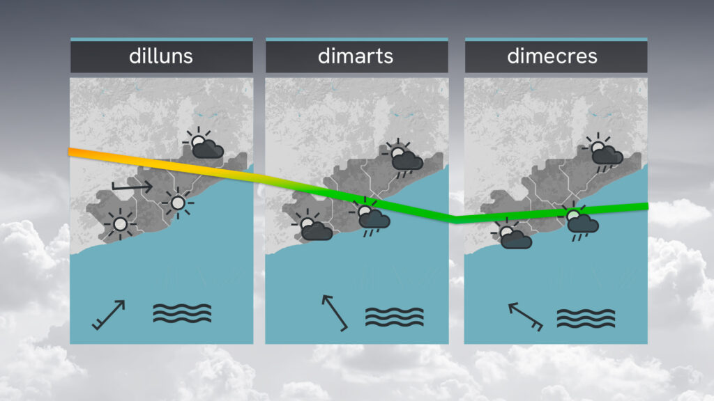 La previsió del temps per a diumenge anuncia l’arribada de l’esperat canvi de temps. El pas d’un solc fred en altura accentuarà la inestabilitat atmosfèrica. Els xàfecs i tronades guanyaran protagonisme al litoral i prelitoral central.