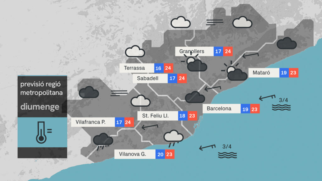 Els núvols aniran a més a la tarda i a partir del vespre s’escaparan xàfecs en punts del litoral sud de Barcelona, sobretot cap al delta del Llobregat i al Garraf.