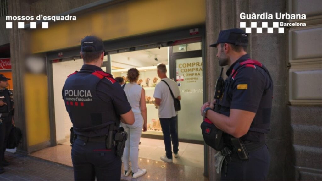 Els Mossos d’Esquadra i al Guàrdia Urbana han pogut recuperar un veritable botí de joies robades en cinc inspeccions a establiments de compravenda d’or de l’Eixample. En total la policia ha pogut recuperar una seixantena de joies, rellotges i altres objectes valorats en 600.000 €. També s’han trobat 4 kg de llàgrimes d’or de 18 quirats per valor de 284.000 €.