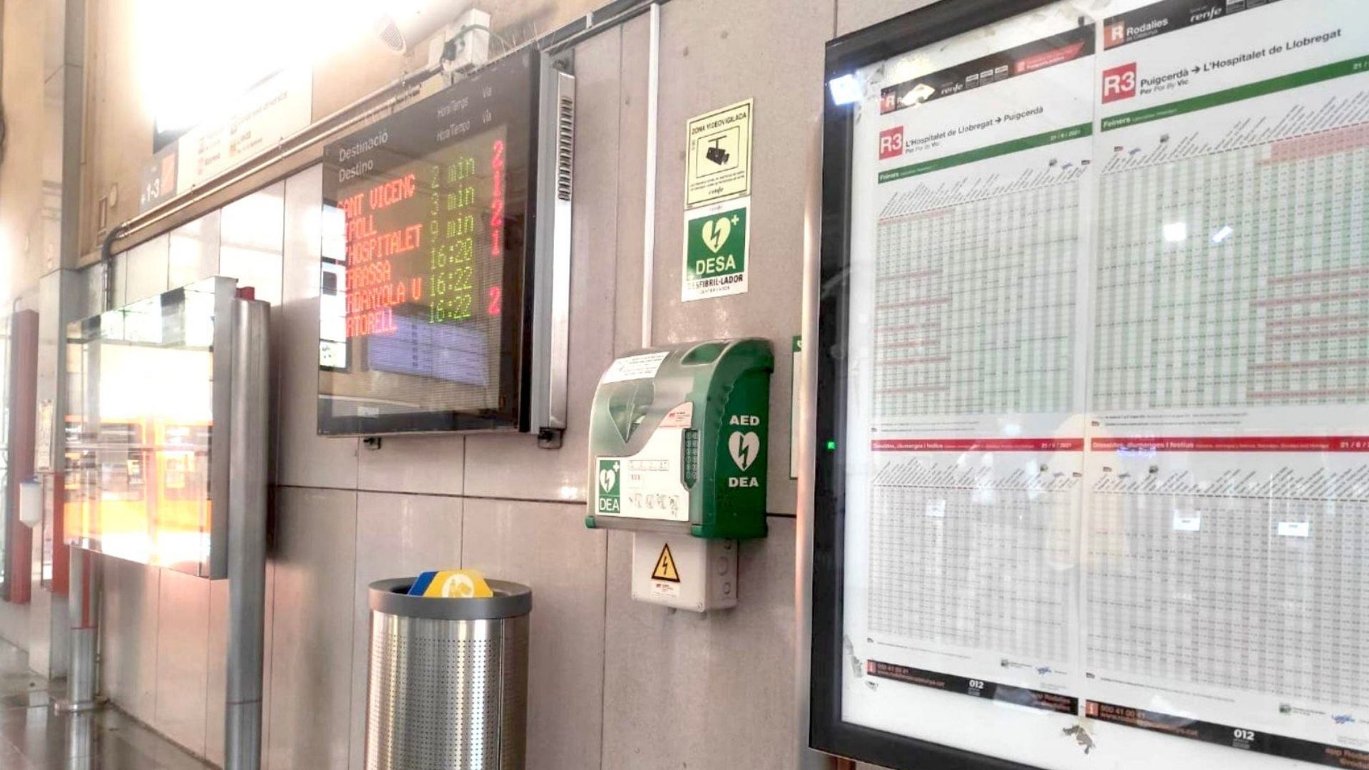 Actualment hi ha 15 estacions de Rodalies de Catalunya que tenen desfibril·ladors que, en cas d’emergència, poden salvar la vida de les persones. En el cas del metro de Barcelona, l’objectiu és que totes les estacions de metro tinguin desfibril·ladors abans d’acabar l’any. Els primers aparells es van instal·lar a les estacions de metro el 2014. Ara, n’hi ha en 26 intercanviadors i enllaços de set línies de metro. De moment, l’L1, que creua tota la ciutat, és la que disposa de més estacions cardioprotegides.